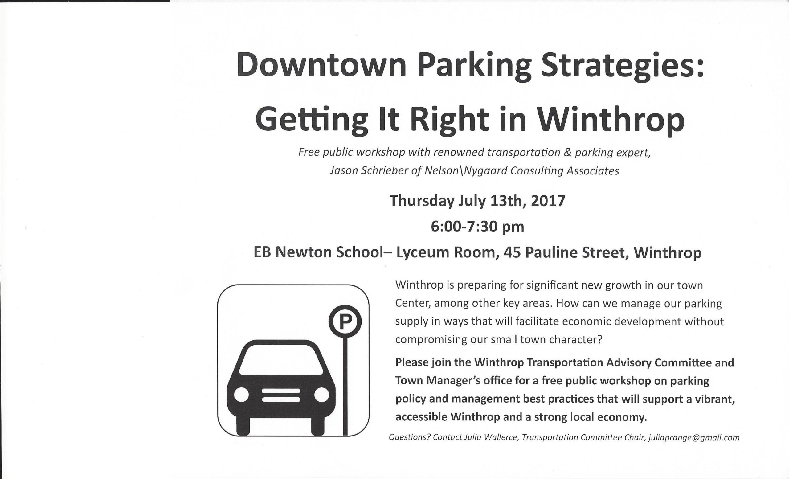 Free public workshop on parking policy and management best practices, with renowned transportation & parking expert, Jason Schrieber of Nelson/Nygaard consulting Associates