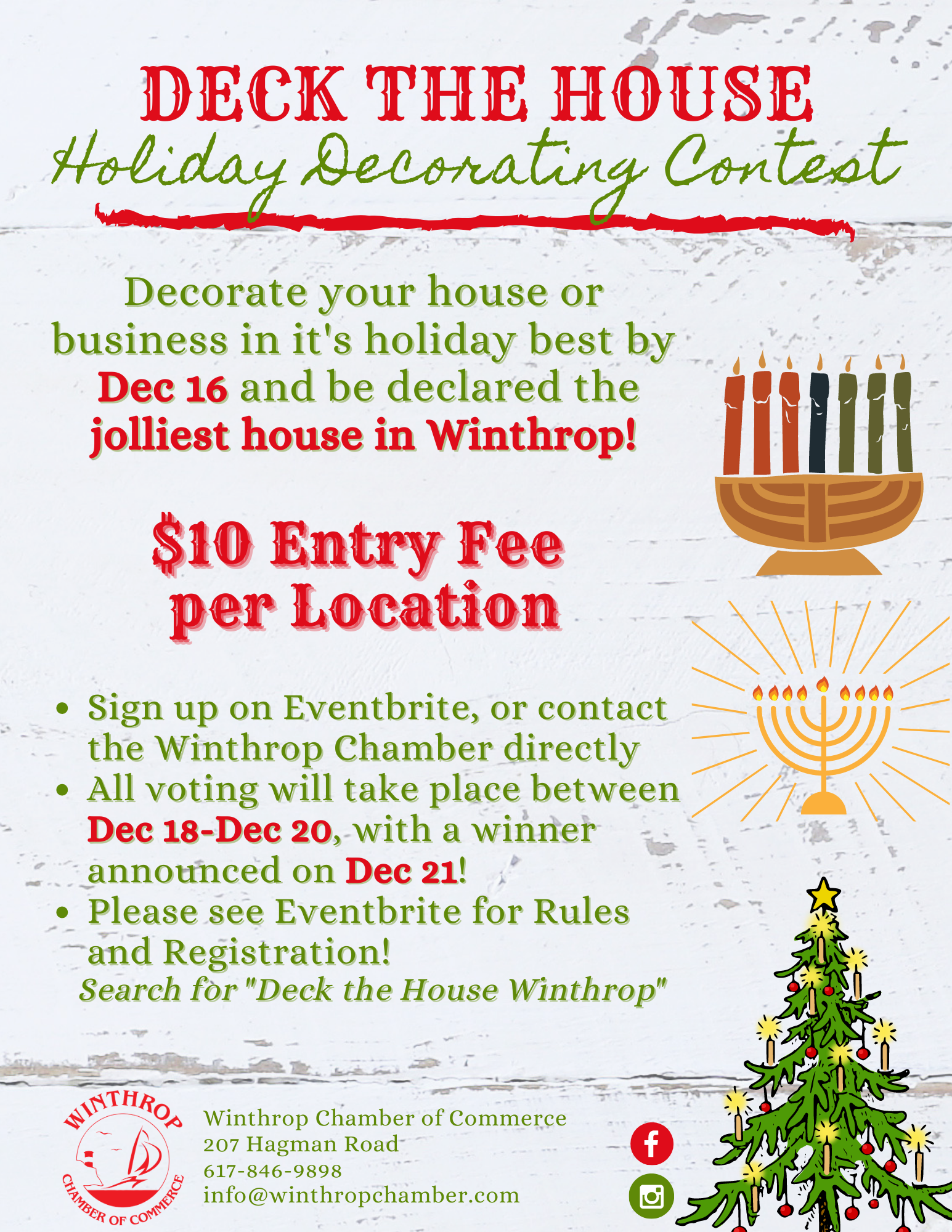 Holiday Decorating Contest:  Decorate your house or business by December 16th. Sign up at Eventbrite (link below).